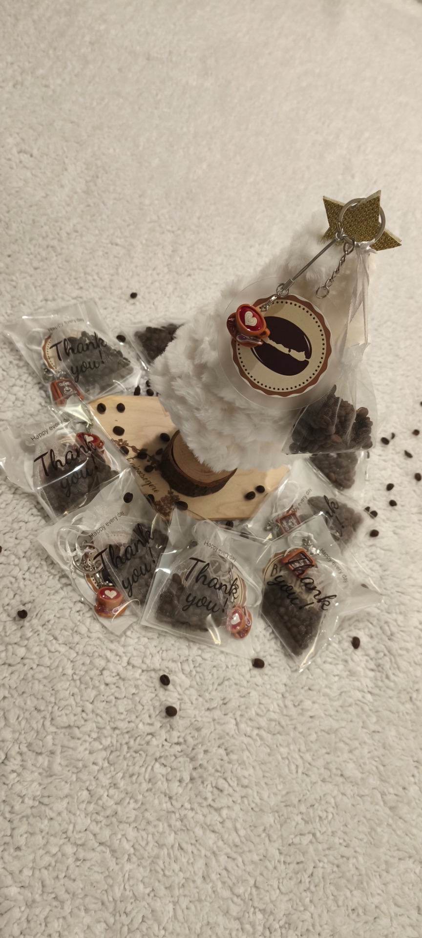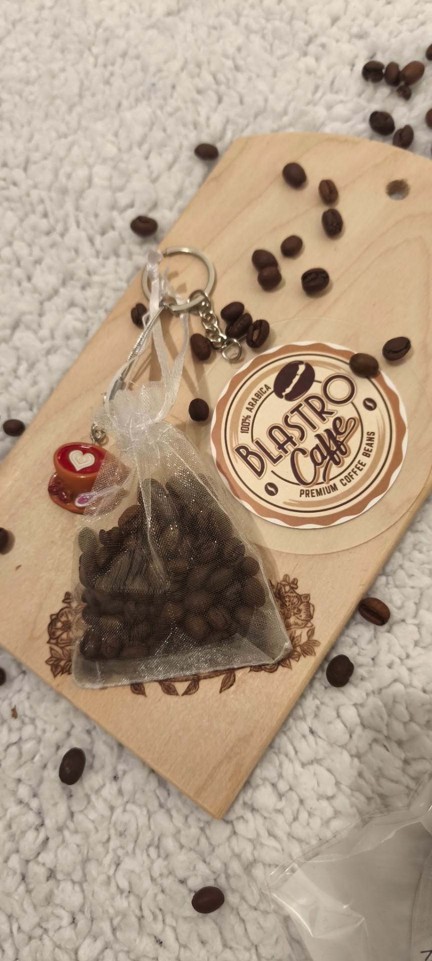 Egy véletlenszerű kedves kis gyanta figurát /kávés csésze, vagy kávés tábla/ tartalmaz, továbbá magát a balatoni életérzéssel inspirált logós kulcstartót, végül pedig a Vellum kávénkkal töltött zsákocskát. Nos a mogyorós pörkölt csokoládés kávé illatot ki ne szeretné szívesen?... A zsákocskánk pedig természetesen után tölthető.